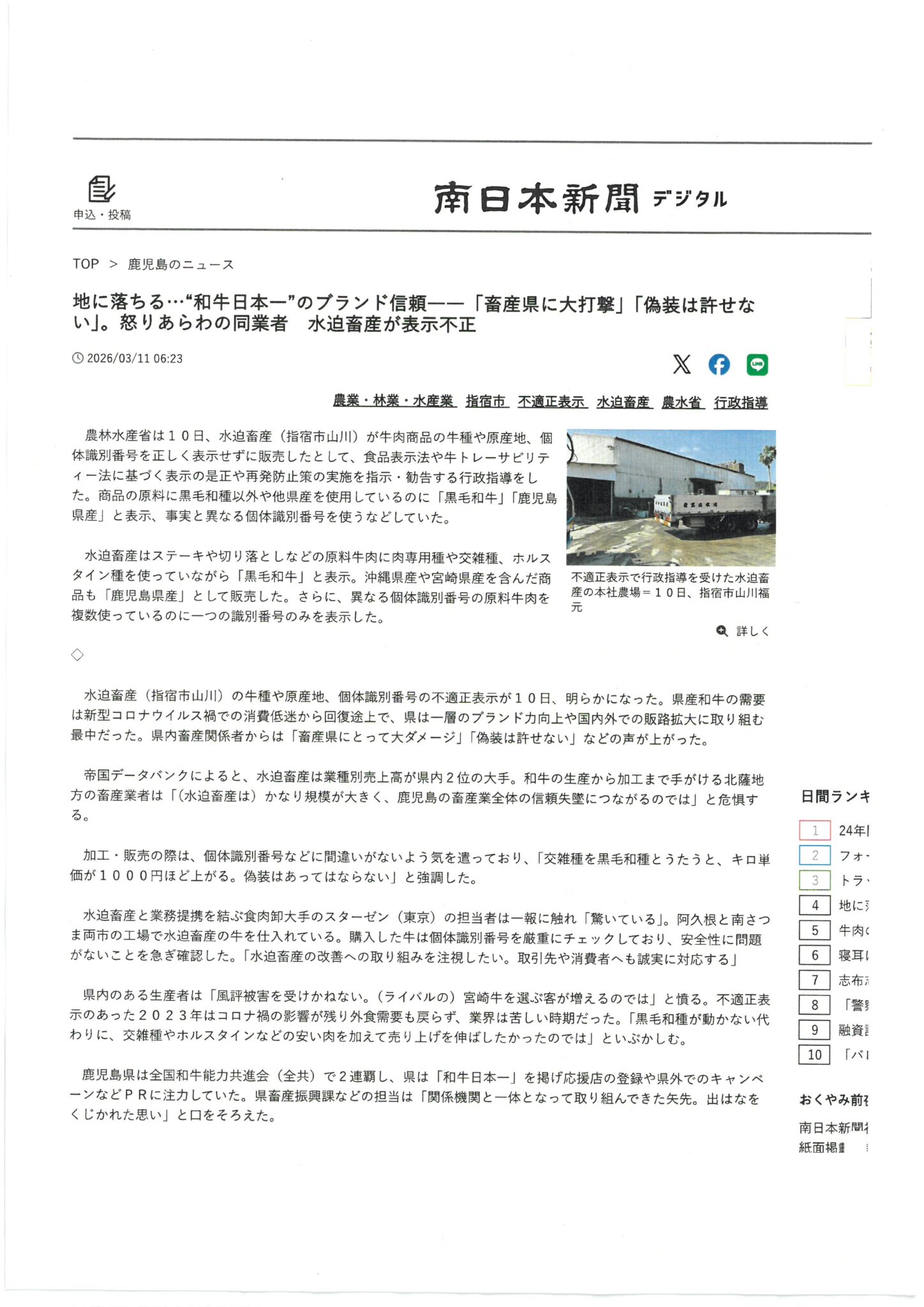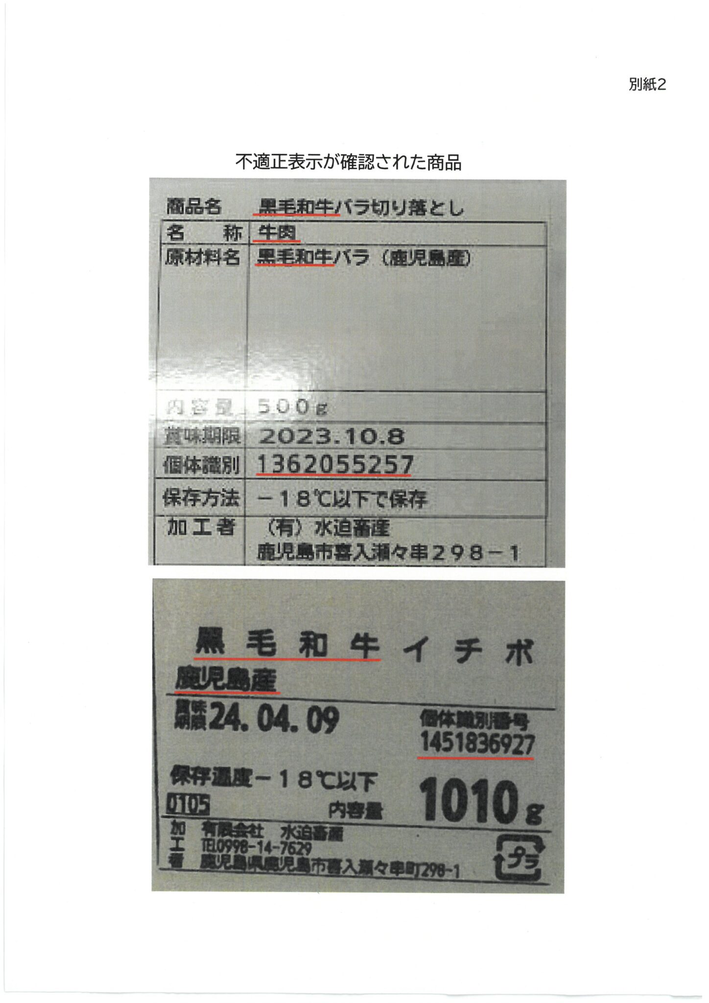 食品表示法・トレサ法違反摘発(鹿児島県)